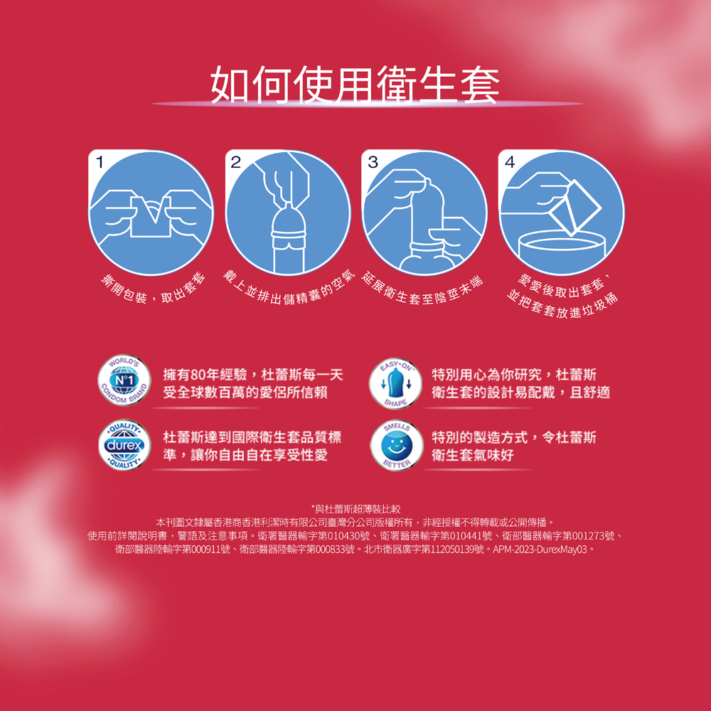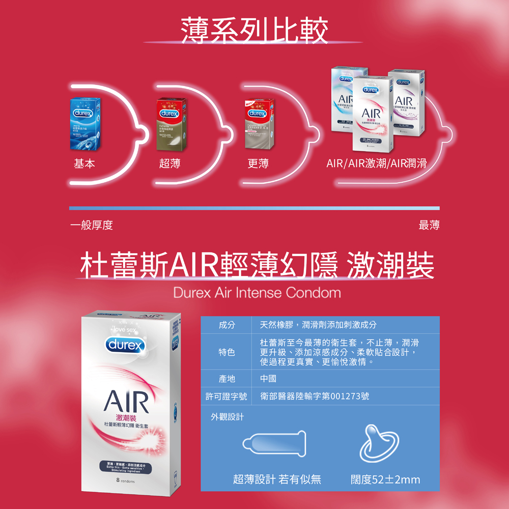 醫療器材許可證所載品名:杜蕾斯輕薄幻隱激潮裝衛生套