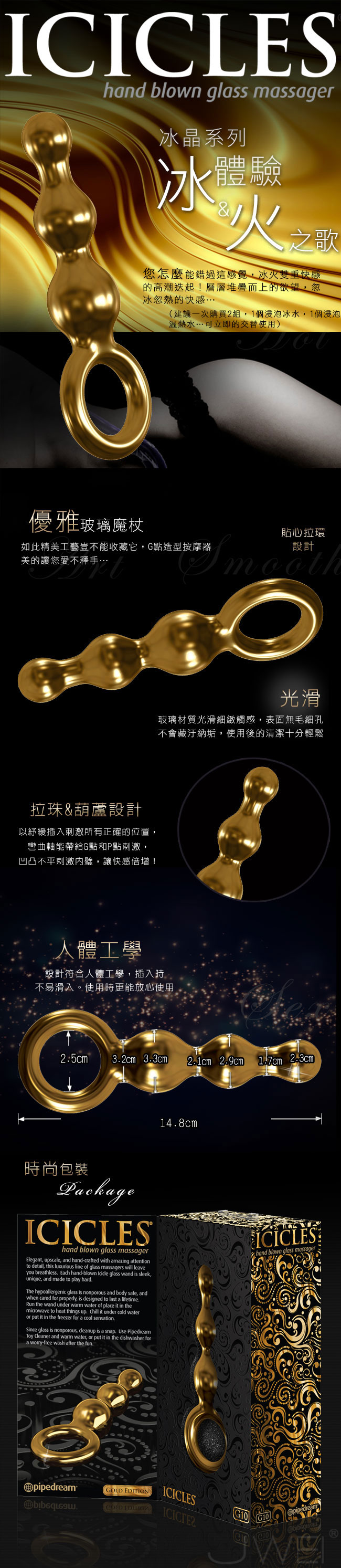 由美國成人玩具第一大廠PIPEDREAM推出的-ICICLES Gold Edition 系列 頂級冰晶玻璃按摩棒