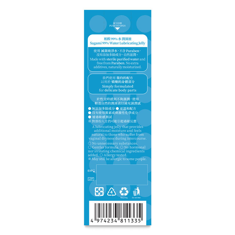 每個人都可能會有濕潤度不足的問題,幸好有相模 99% 水 潤滑液 — 使用滅菌純淨水,