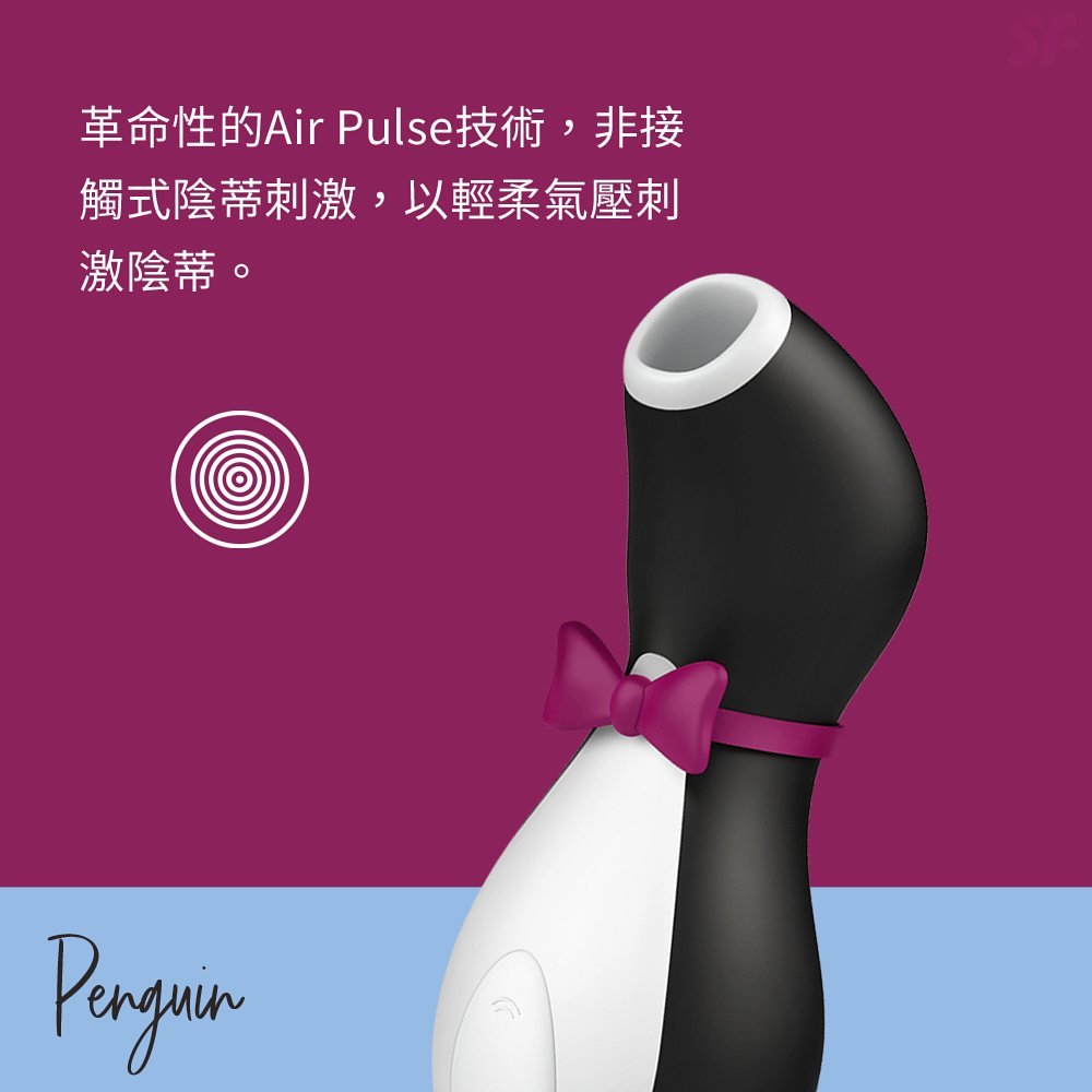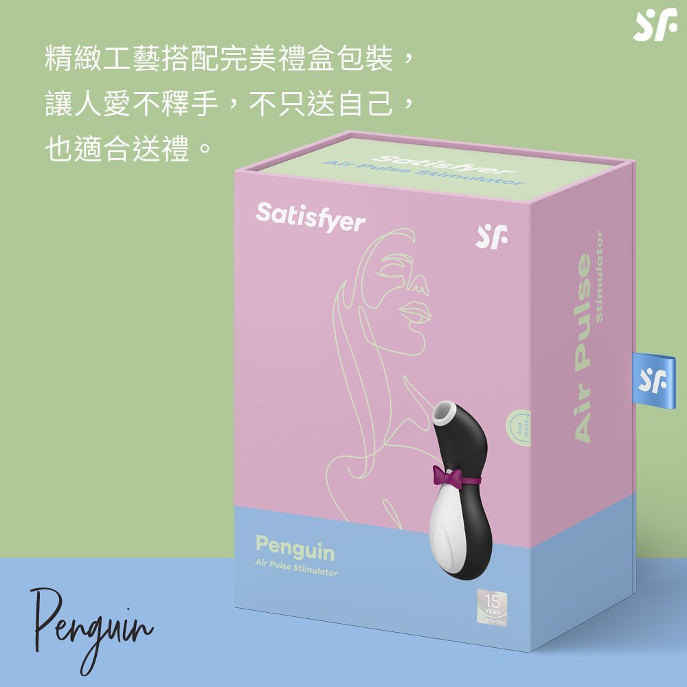 可愛的企鵝設計,優雅的黑色身體和白色的肚子,裝飾著精緻的領結,如紳士般隨時等著陪伴你! 革命性的Air Pulse技術,非接觸性震動,以輕柔氣壓刺激陰蒂。 極簡的按鈕設計,可輕鬆的控制使用。 符合人體工學的設計和曲線,適合一手掌握 寬大柔軟的矽膠吸吮頭完美包覆陰蒂,帶來無與倫比的高潮體驗。 時尚精緻,自用送禮皆宜。 IPX7 等級專業防水技術,意味著它也是你在淋浴或浴缸中感官享受的完美伴侶。在水下,吸啜感更加強烈!
