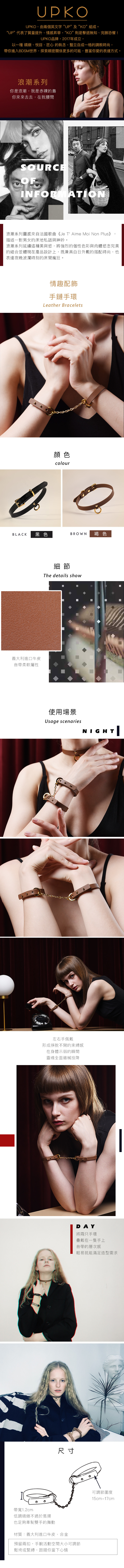 *本賣家為台灣官方正式授權之台灣經銷商,台灣公司貨,台灣出貨。 「UPKO」由兩個英文字組成 「UP」、「KO」組成「UP」代表了質量提升,情感昇華「KO」則是擊退無知,完勝恐懼 一個「臣服」的故事...♥ BDSM分別為: 綑綁(Bondage)、調教(Discipline)【BD】支配(Dominance)、服從(Submission)【DS】主人(Sadism)、奴隸(Masochism)【SM】 調教情慾,追求更昇華的身心靈刺激,讓生活情趣充滿快感這其中的滋味曼妙,我可無法多說只因用文字語言無法敘述出那驚喜快感必須你親自體會... ◎商品材質◎ 義大利進口牛皮,合金 ◎商品尺寸◎ 寬度:1.2cm 可調節圍度:15cm-17cm