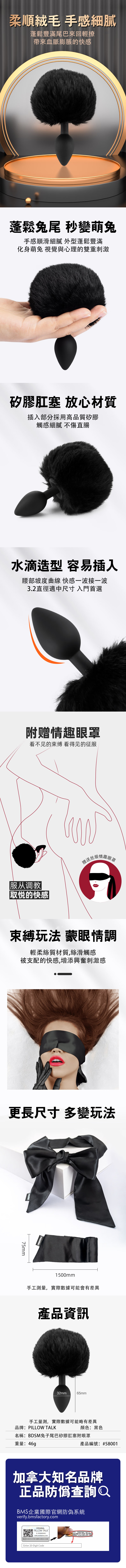 加拿大 BMS Punishment BDSM兔子尾巴矽膠肛塞附眼罩(黑)