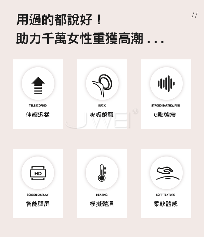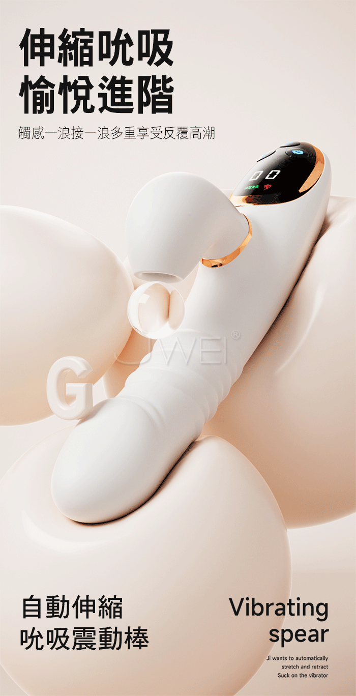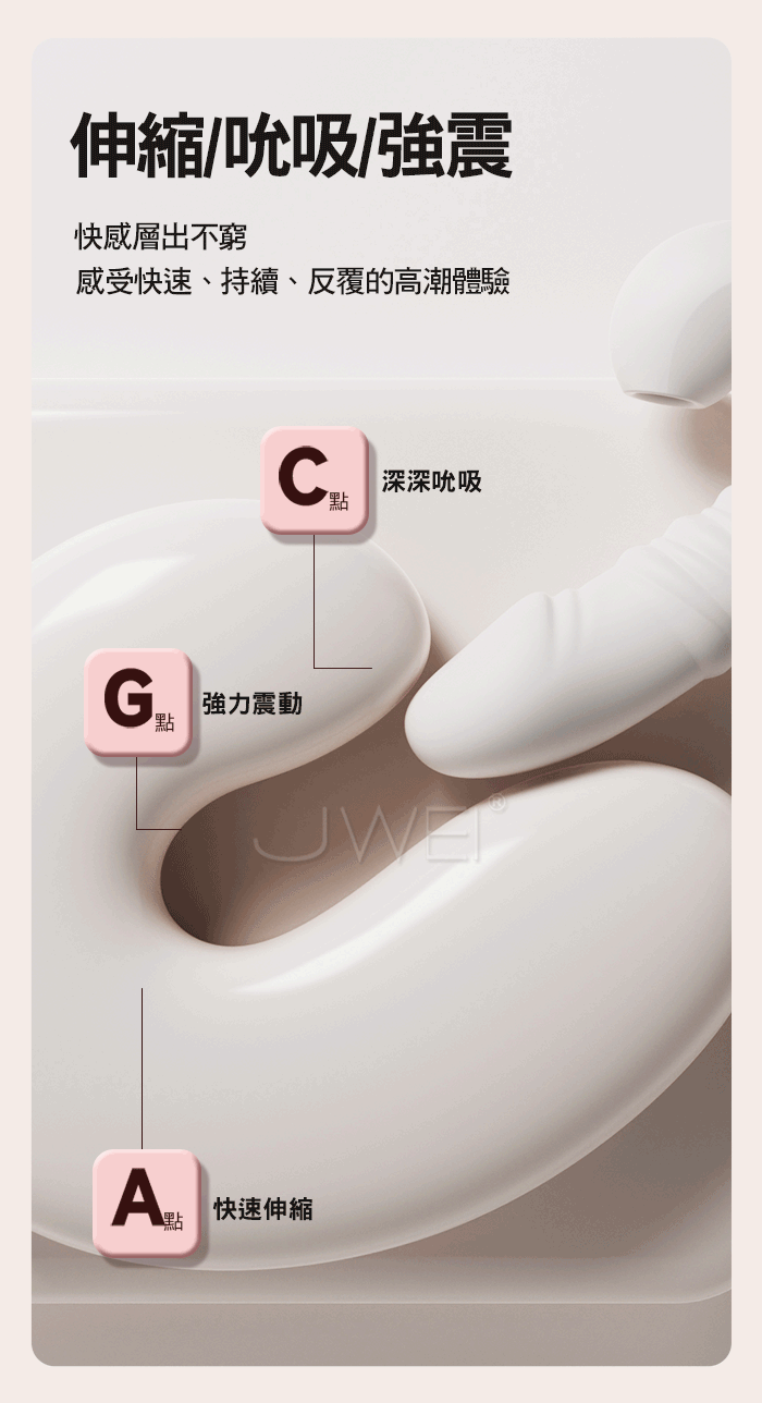 9x9頻伸縮震動,吮吸挑逗,快感層出不窮,感受快速、持續、反覆的高潮體驗