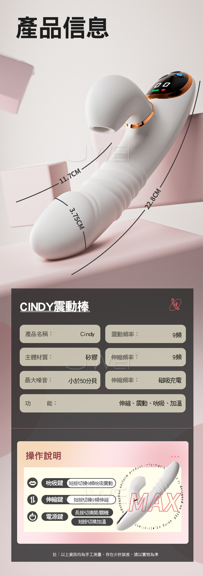 ■功能:9頻震動、9頻吮吸、9頻伸縮、仿真體溫