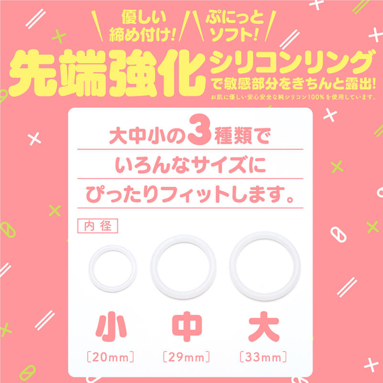 內附小、中、大三種尺寸的鎖精環,能讓敏感部位暴露出來。