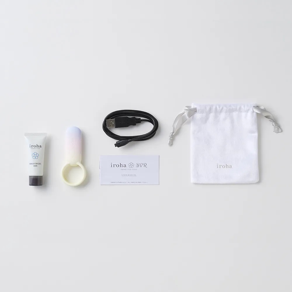 內容物 : SVR(本體)、專用USB充電線、專用收納袋、iroha SMOOTH GEL 滑潤凝露(迷你試用瓶)、使用說明書