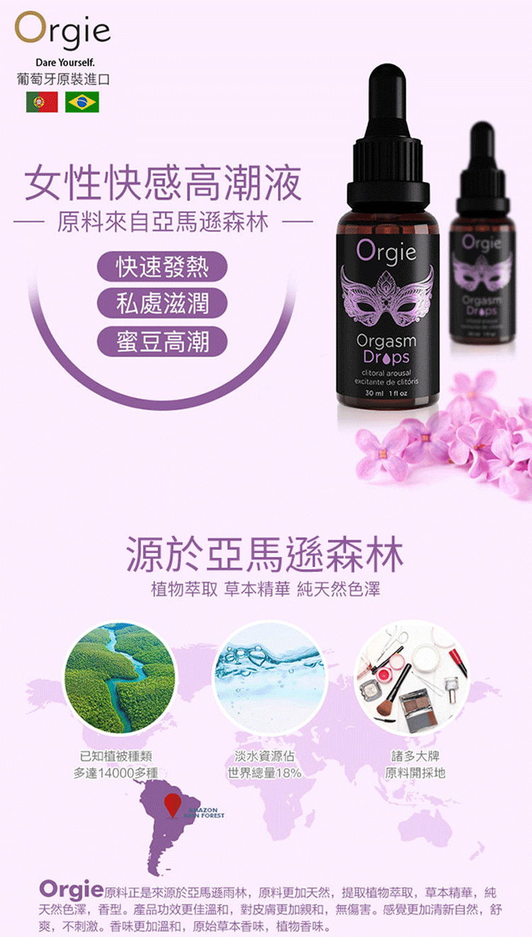 Orgie 獨家且突破性的配方,採用了高端原料。