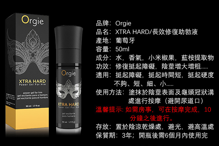 Xtra Hard強效凝膠含有辣椒素及其他刺激性活性成分,可提升勃起硬度並增強性慾。
