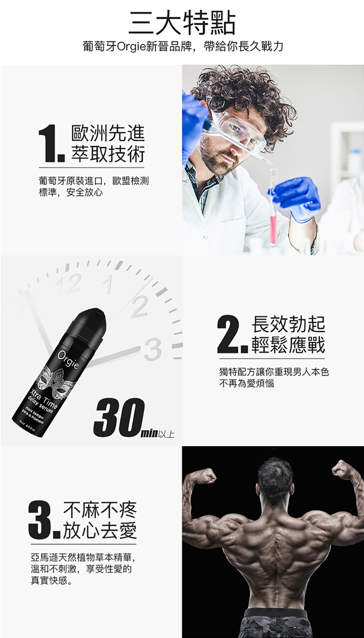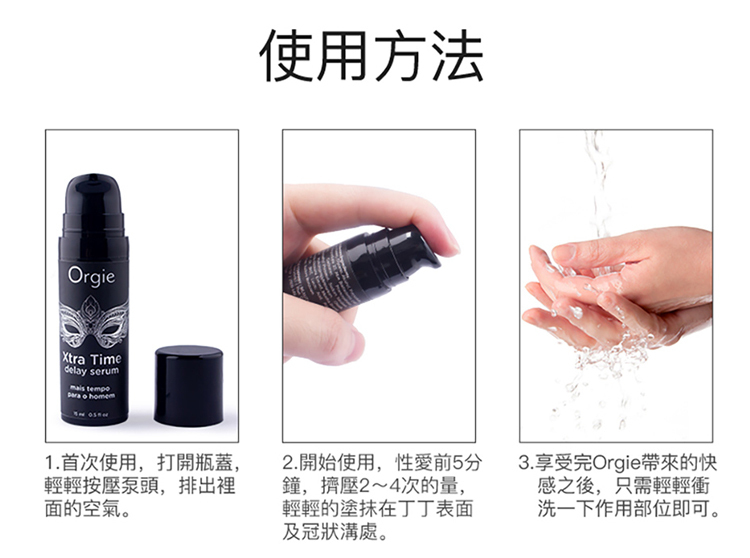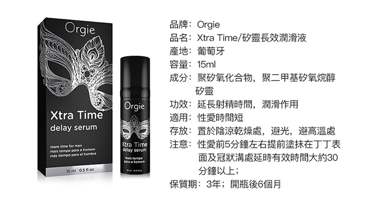 Xtra Time 延時精華液採用優質矽膠配方,在陰莖表面形成細薄的保護膜,減少敏感度,延長持久時間。