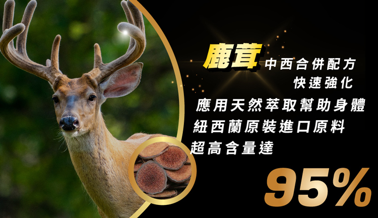 ,搭配紅景天、薑黃素、紐西蘭鹿茸粉、鋅酵母、精氨酸等多種營養元素。