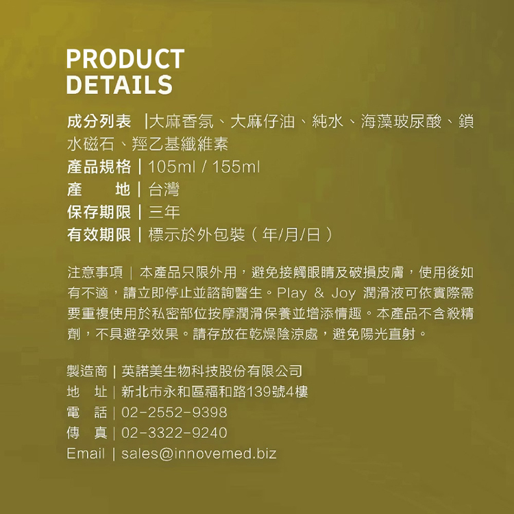 成分:大麻香氛、大麻籽油、水、海藻玻尿酸、