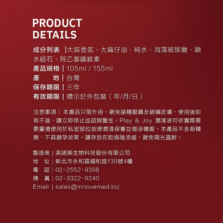 成分:大麻香氛、大麻籽油、水、海藻玻尿酸、