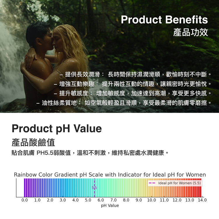這款潤滑液特別添加維他命E與PH5.5弱酸性配方,溫和親膚,不刺激肌膚,適合所有類型的伴侶使用。