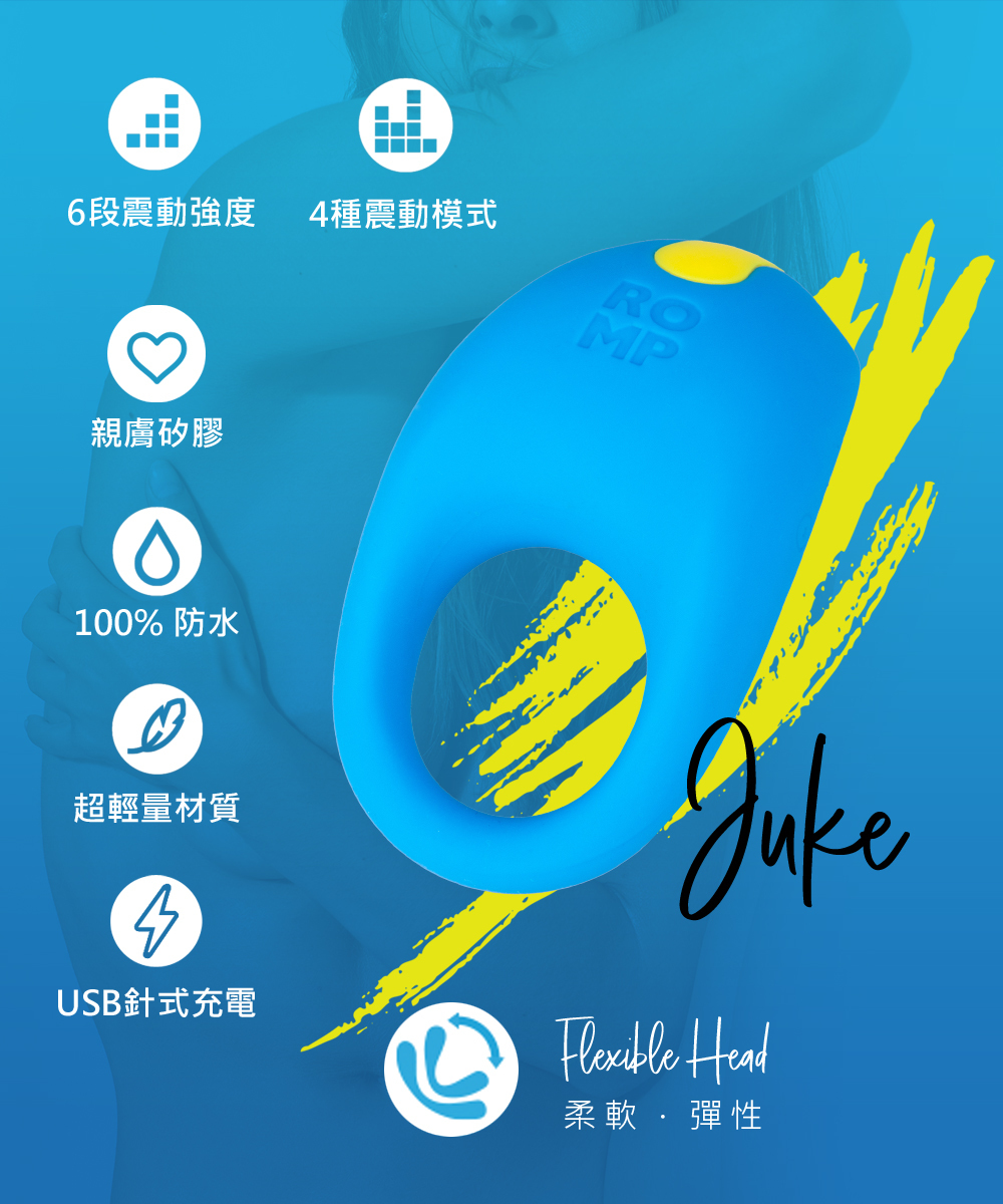 Juke 讓你與伴侶更親密無間,彈性震動環一方面可提升陰莖硬度與持久力,延長親密時光。
