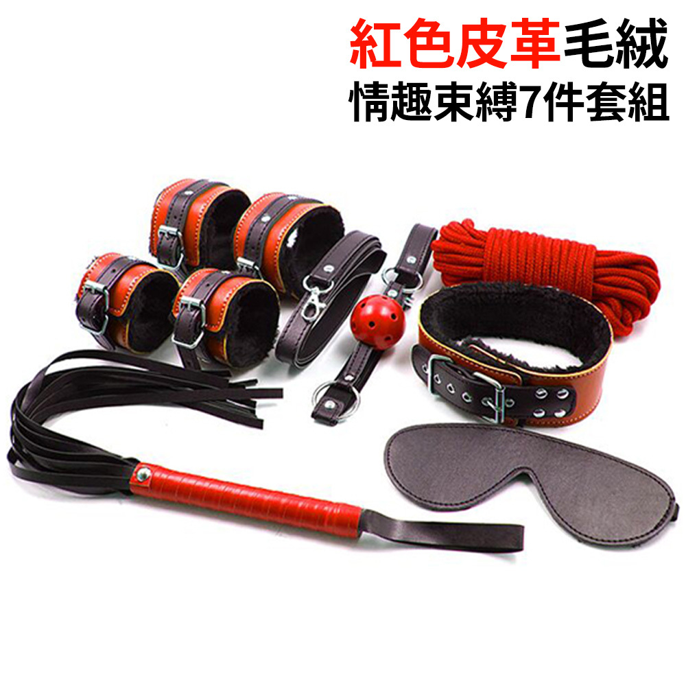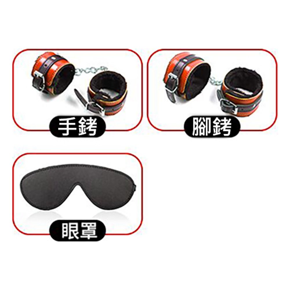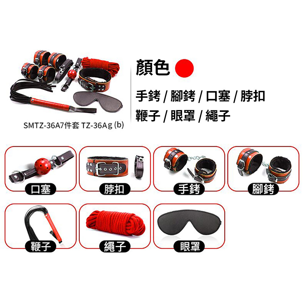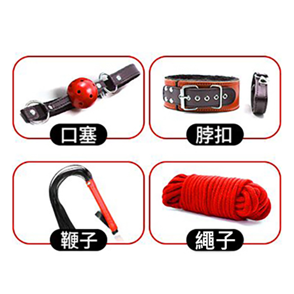 7件套組(眼罩+鞭子+口塞+手腕銬+腳腕銬+頸圈+棉繩)