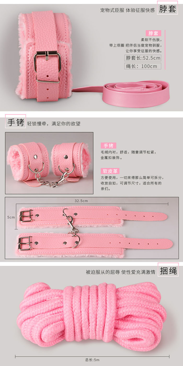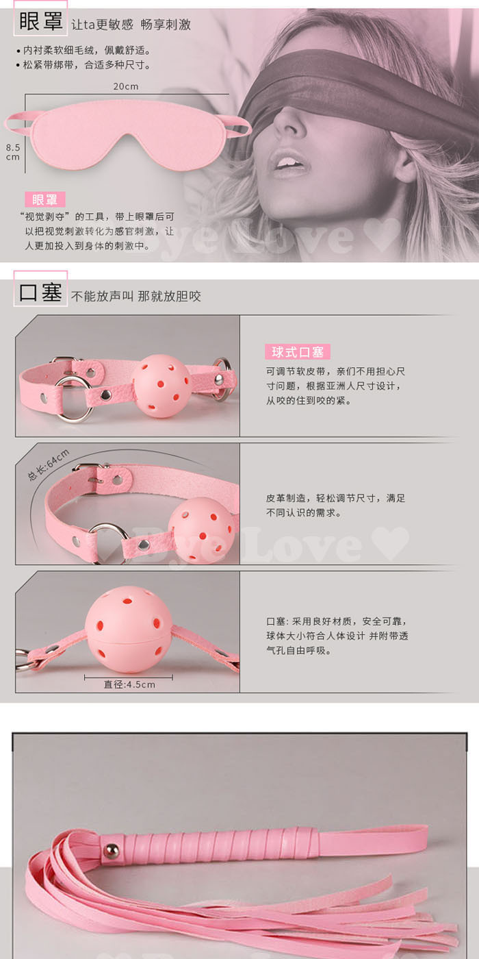 SM激情皮革7件套(眼罩+脖圍+口塞+鞭子+手銬+腳銬+棉繩)