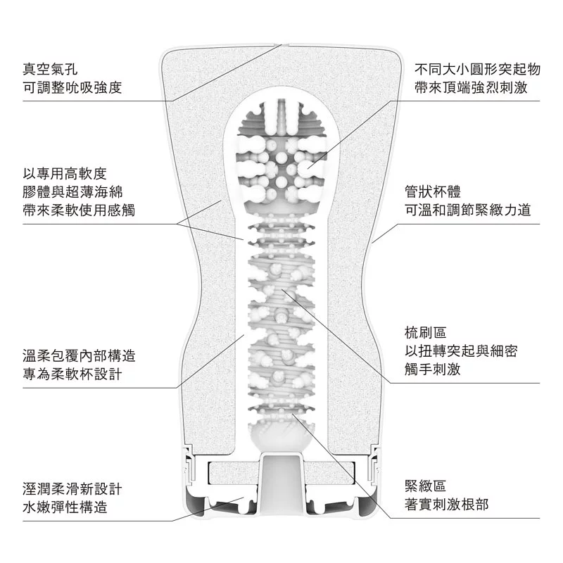 採用特殊氣閥構造,按住起氣孔同時拔出,內部會接近真空狀態,產生驚人真空吮吸效果。