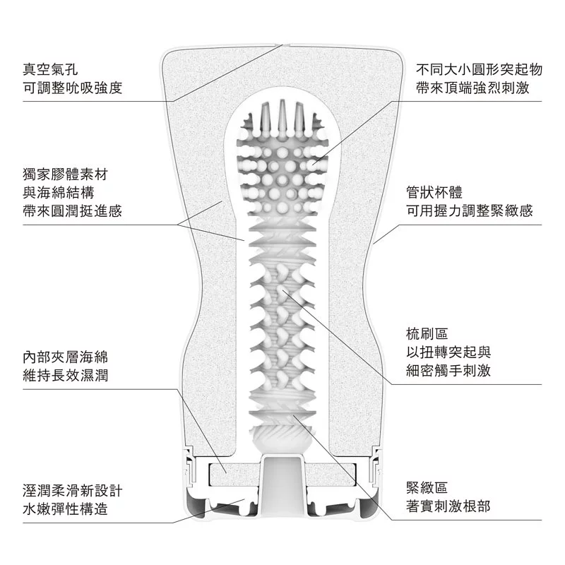 一手掌「握」,最自在!以更加柔軟的管狀容器,直接感受握力。只要像搓揉般握住,或從左右兩邊加壓過來,就可以享受到您喜歡的彈性變化刺激。