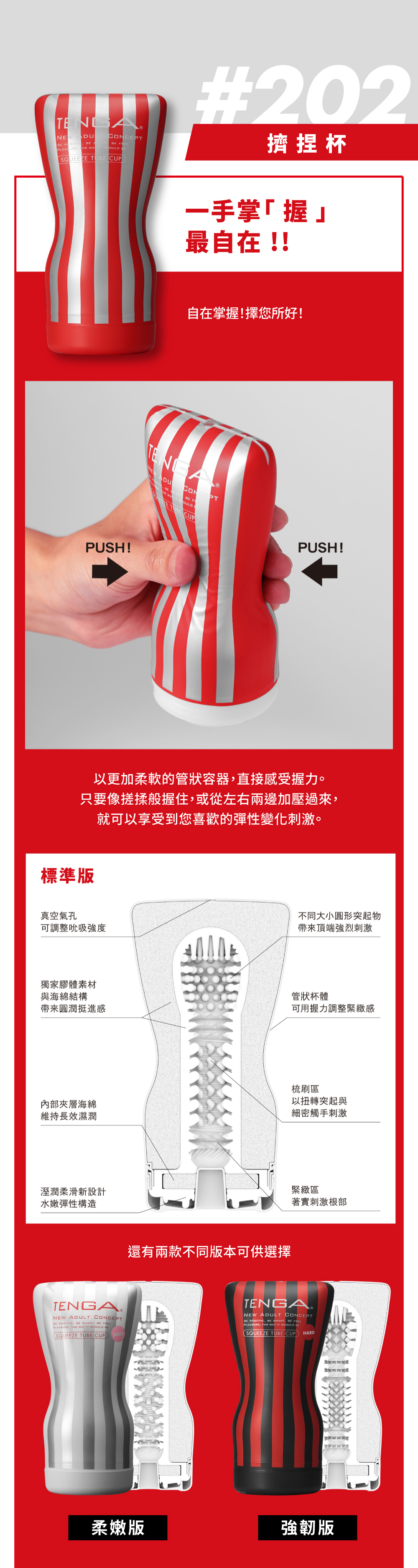 商品編號:TOC-202商品名稱:TENGA CUP 擠捏杯JAN編碼:4570030972456 產品尺寸:65×83×155mm本體重量:約122g