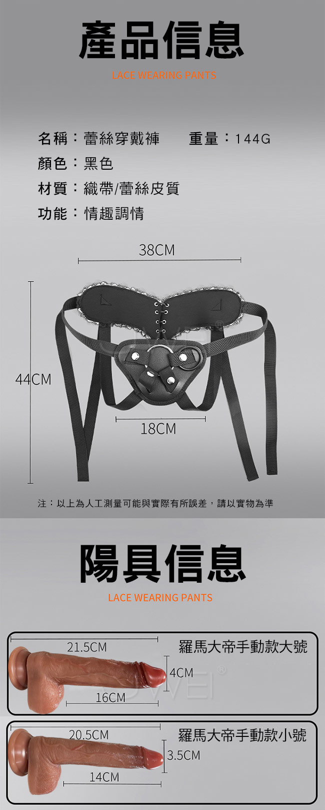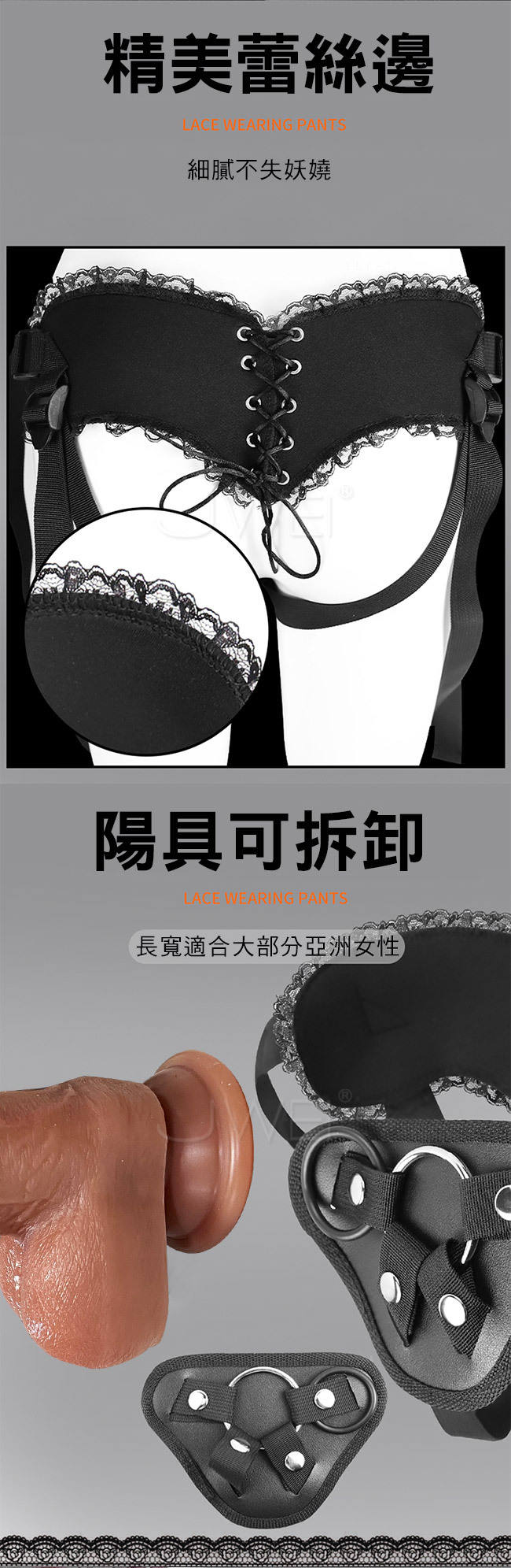 蕾絲穿戴,愛無界限,精美蕾絲邊,細膩不失妖嬈,更性感;陽具仿真外觀,視覺衝擊,懂你身體的空虛給你想要的真實,厚實肉感,體感更真,紋理細膩、緊實舒適;大小陽具可拆卸,長寬適合大部分亞洲女性;精編織帶,牢固耐用柔韌有餘;皮質柔軟,柔軟舒適呵護肌膚。