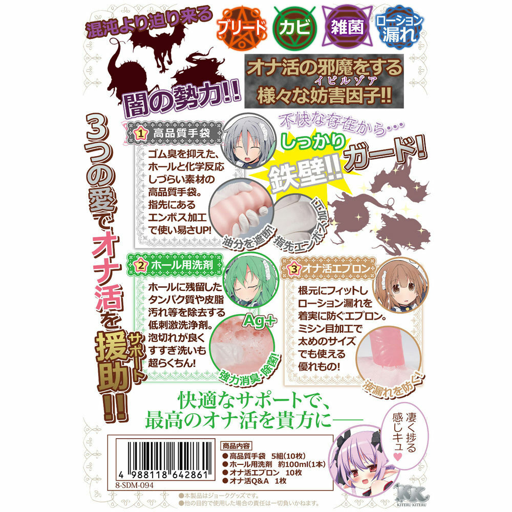 內容物:高品質手套×5對,飛機杯專用清潔劑100ml,手淫用圍裙10片,手淫Q&A×1張、重量80g
