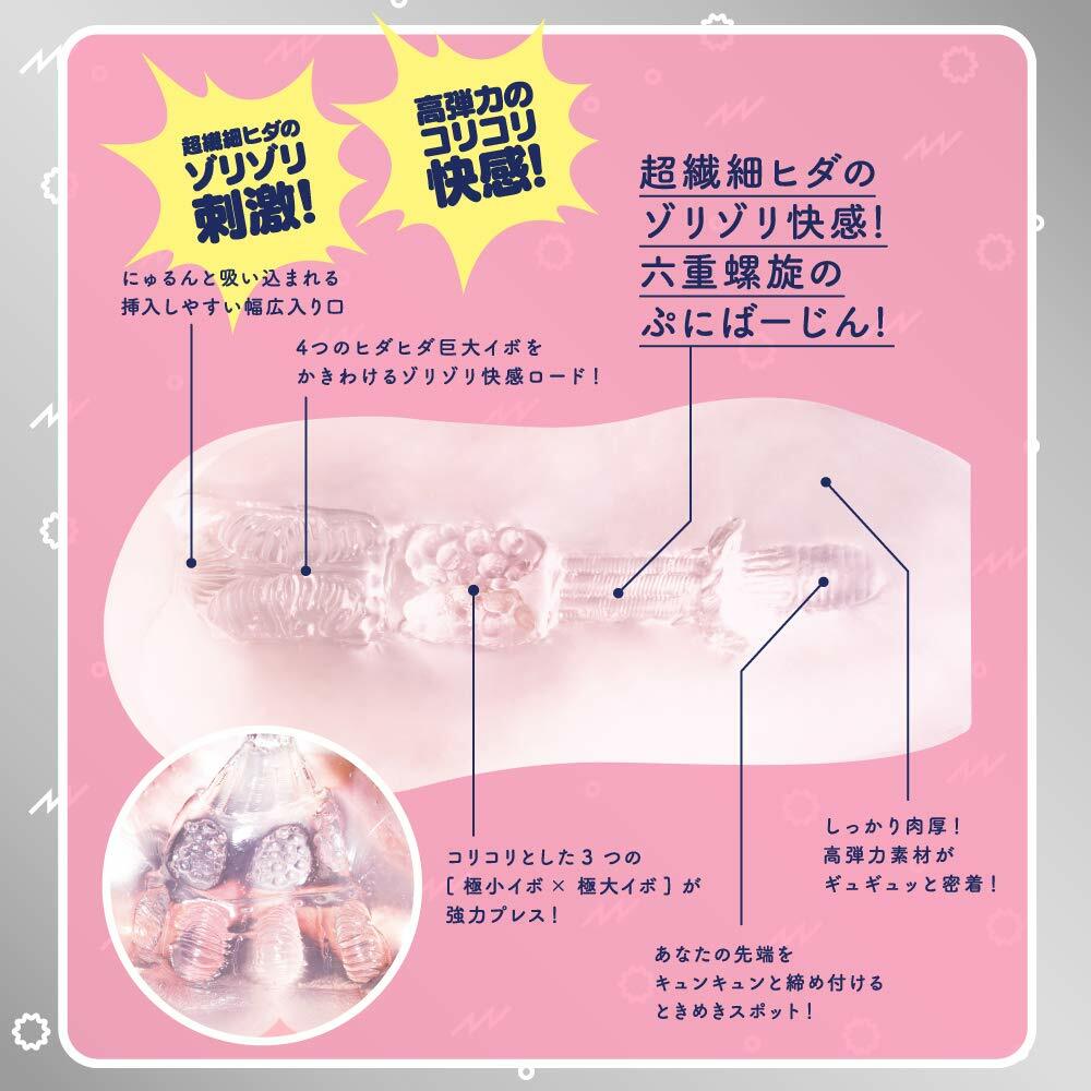 神コラボ第二弾!RIDE × G PROJECT!『ぷにばーじん』に六重螺旋を搭載!超繊細ヒダのぷにコリ快感が堪らない!ずっしり肉厚重量約300g!むにゅっと締め付けるふんわりとろける挿入感!もっちり吸いつく人肌素材「バンジータッチ(R)」を採用。直接肌に触れるものだから安心の国産素材&国内生産。パッケージイラスト:みぶなつき