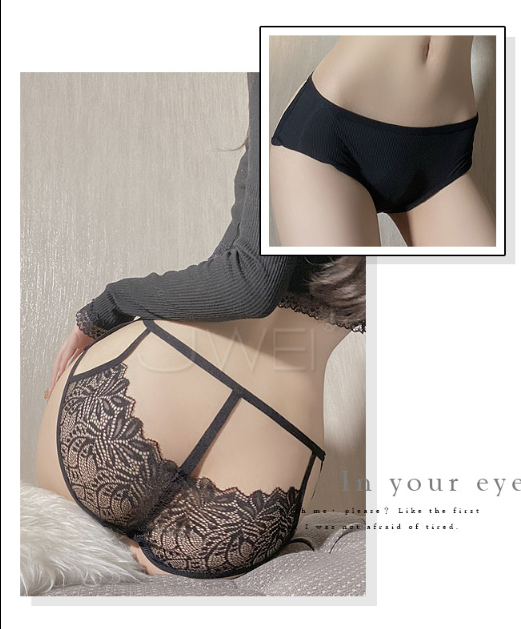 ◇◆花容月貌.鏤空美臀蕾絲低腰冰絲內褲-黑◆◇