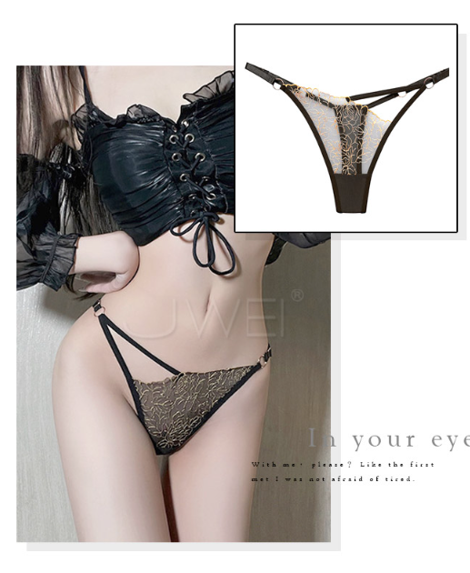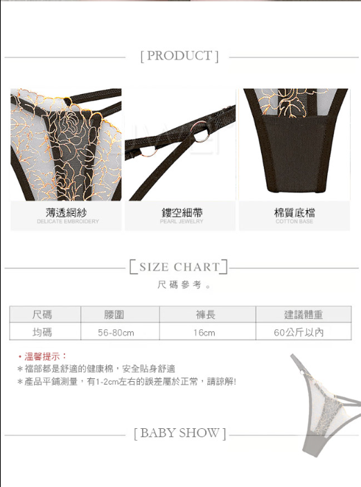◇◆香肌玉膚.花漾v型鏤空顯腰可調節誘惑丁字褲-黑色◆◇