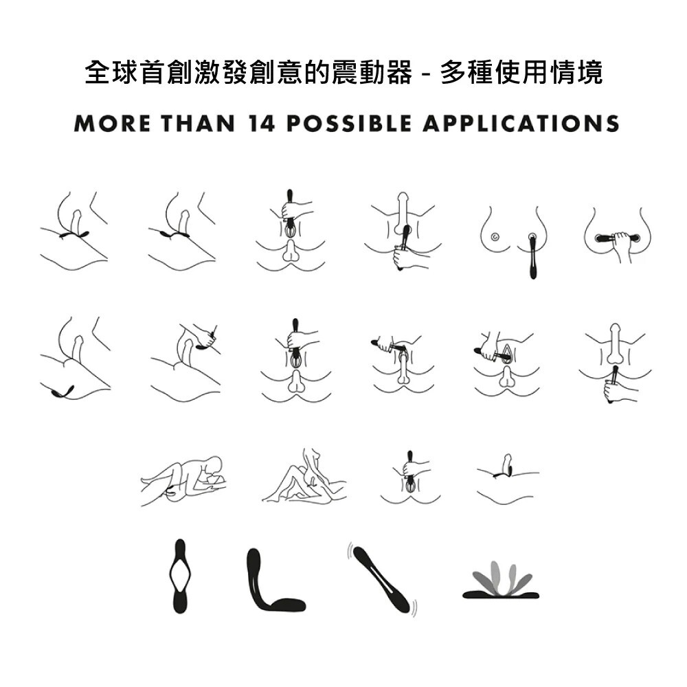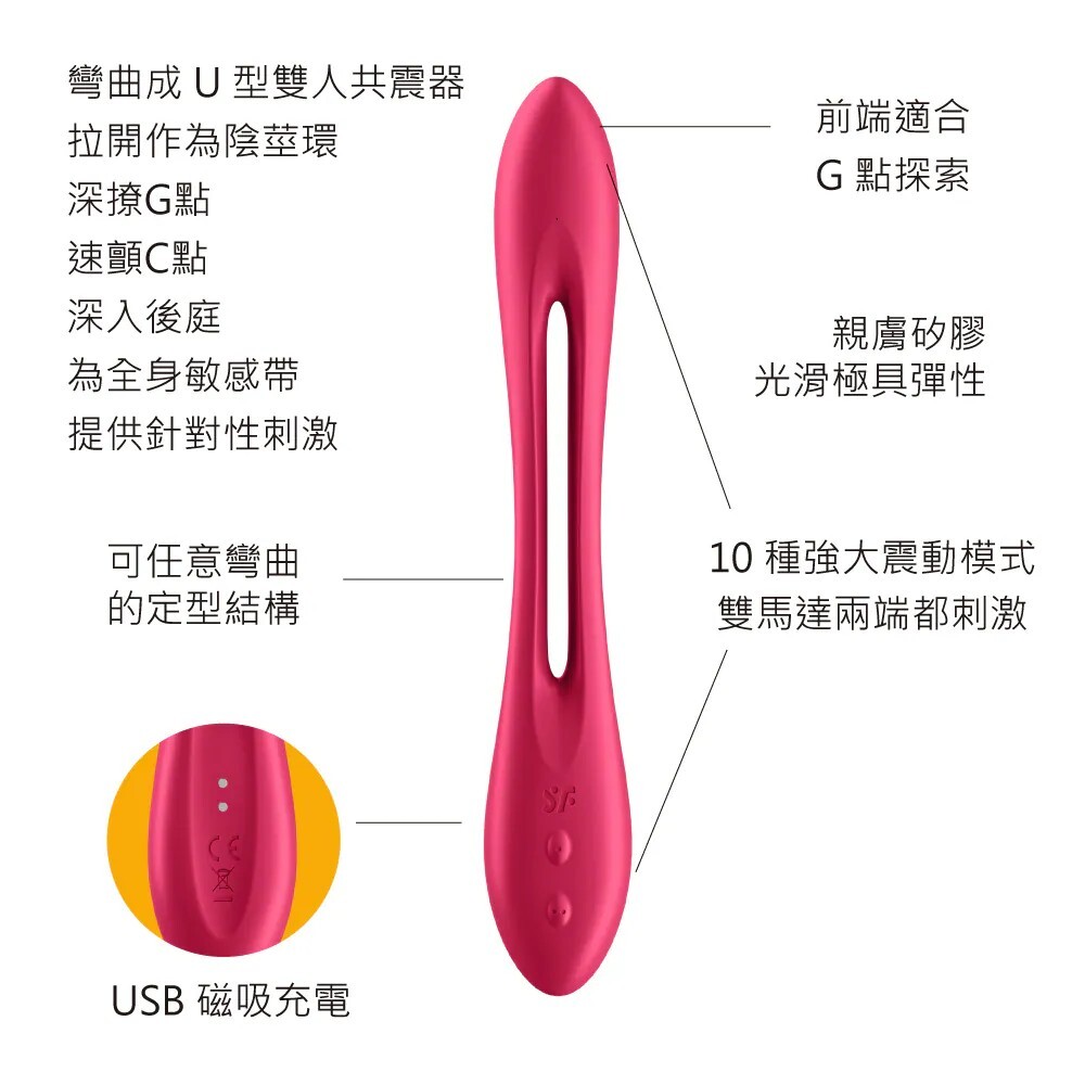 可彎曲成 U 型雙人共震器、陰莖環、後庭、C點震動器
